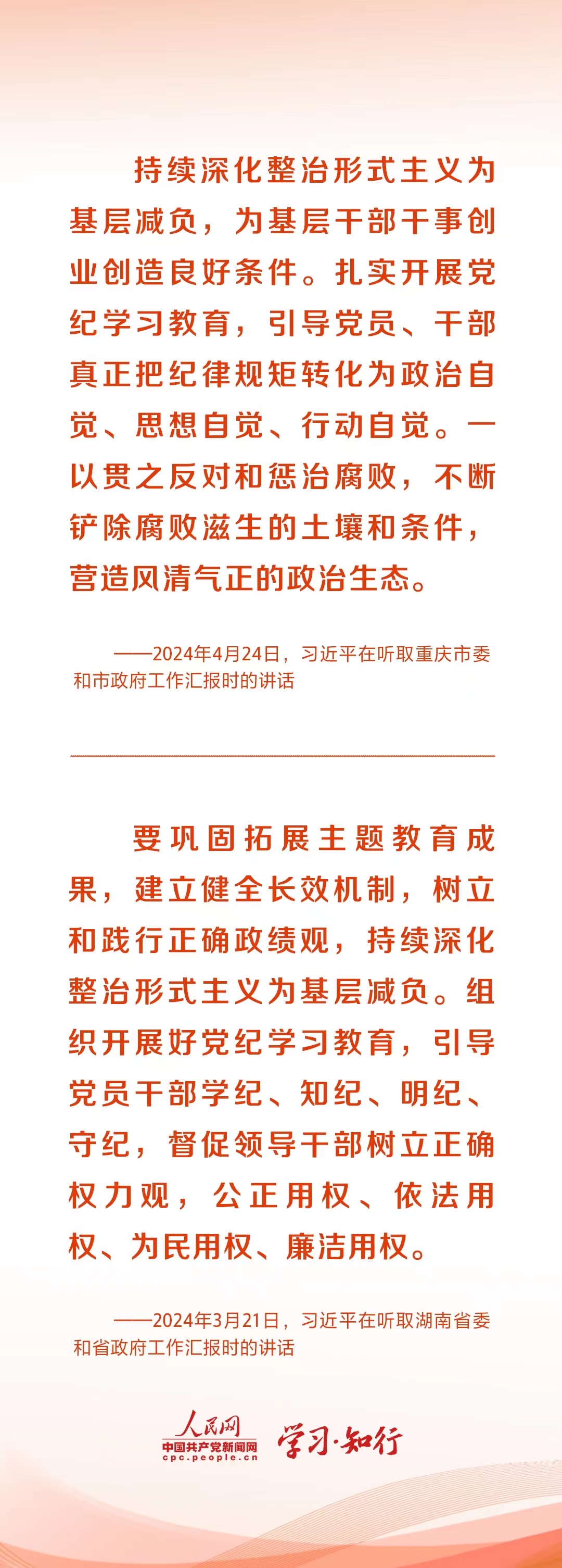 在新時代推動西部大開發(fā)座談會上,習近平再次明確,“鞏固拓展主題教育成果,抓好黨紀學(xué)習教育,持續(xù)整治形式主義為基層減負?!?/p>
