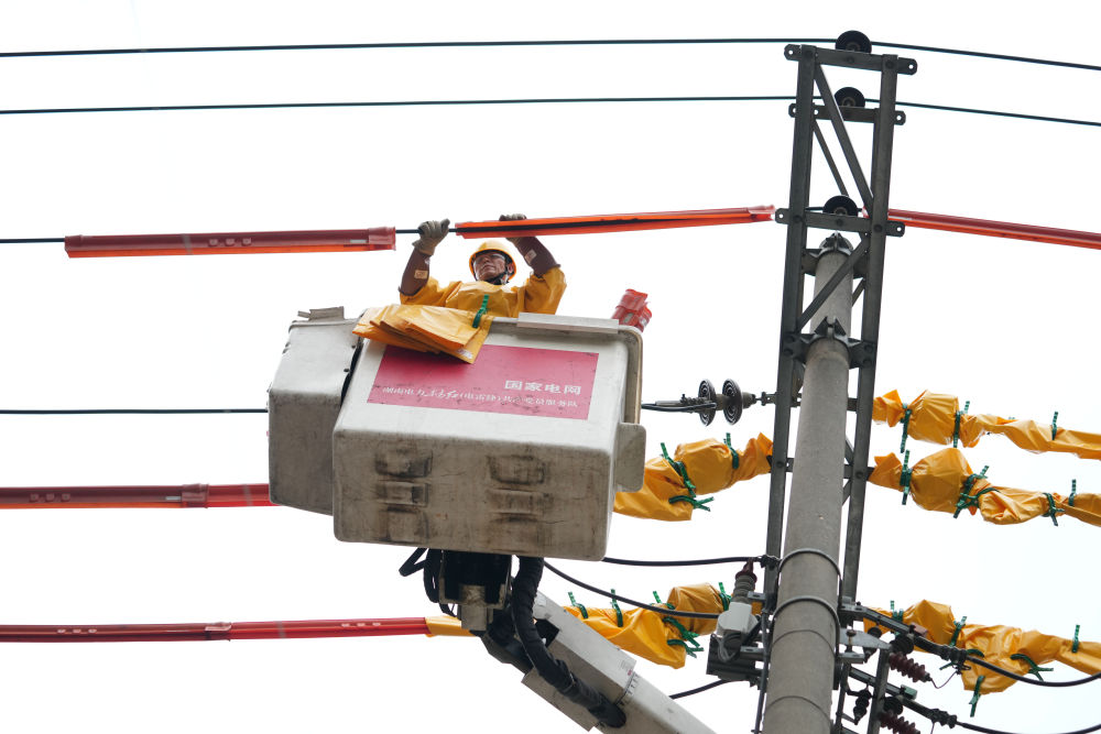 頭戴安全帽,身穿絕緣服,登上斗臂車的高空平臺進行帶電作業(yè)。電流穿身過,每一個操作細節(jié)必須確保安全、精準。沒過多久,貼身的工裝便被汗水完全浸濕。這是國網(wǎng)長沙供電公司帶電作業(yè)分公司配網(wǎng)不停電二班副班長賀彪的工作常態(tài)。
