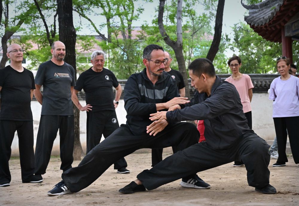 ↑2024年4月20日,河南溫縣陳家溝太極拳學(xué)校的學(xué)生在為法國、美國學(xué)員進行太極拳表演。體育架起了中法兩國人民友誼的橋梁 60年來中法間體育人文交往源遠流長