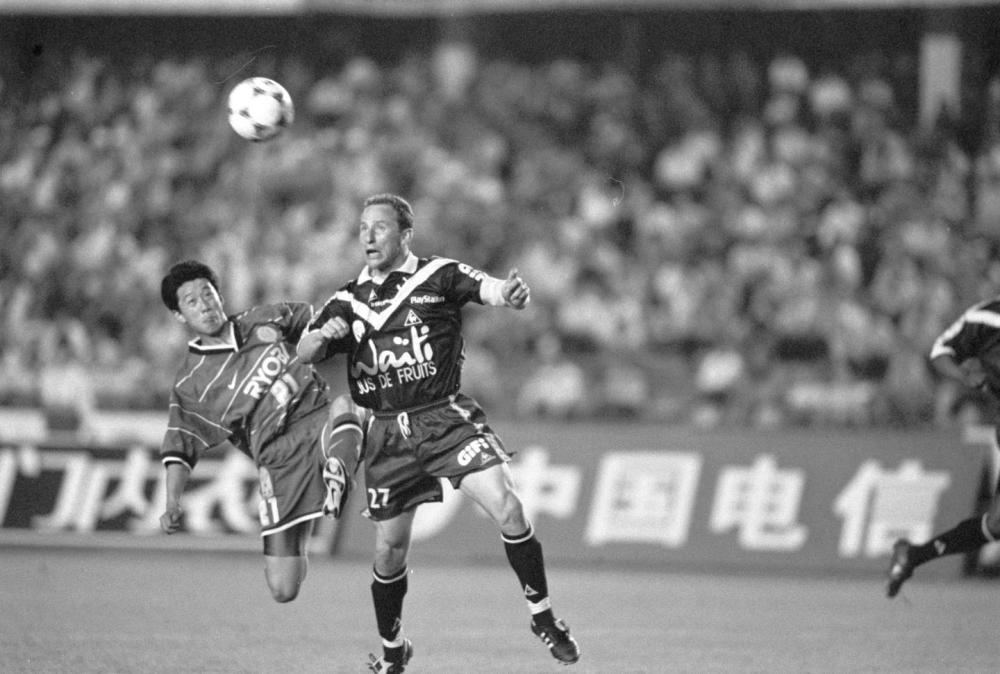 ↑1998年5月20日,98中法足球?qū)官愒诒本┕と梭w育場舉行。北京國安隊2比3不敵來訪的法國波爾多隊。