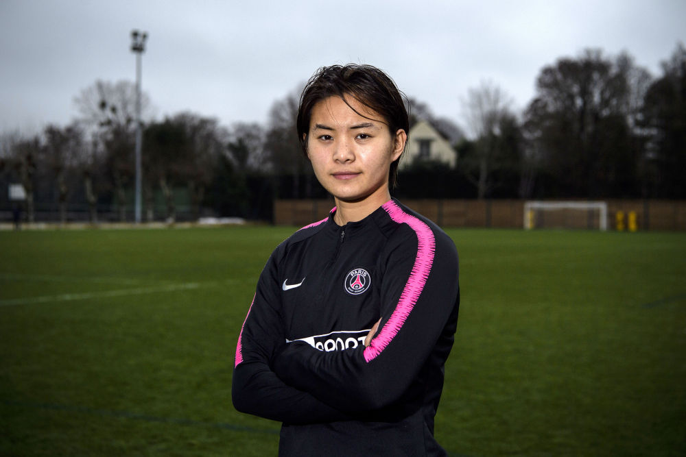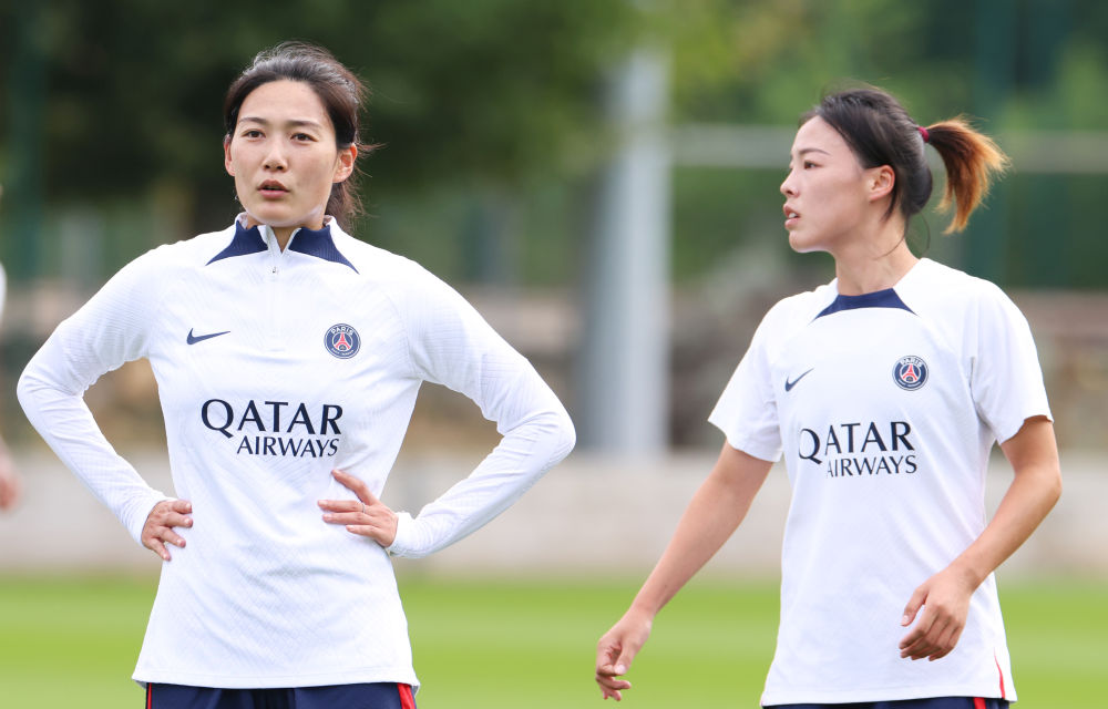 ↑2019年3月27日,巴黎圣日耳曼隊球員王霜在在女足歐冠1/4決賽次回合與切爾西隊的比賽中帶球突破。跟隨王霜的腳步 2022年,李夢雯、楊莉娜相繼加盟巴黎圣日耳曼俱樂部