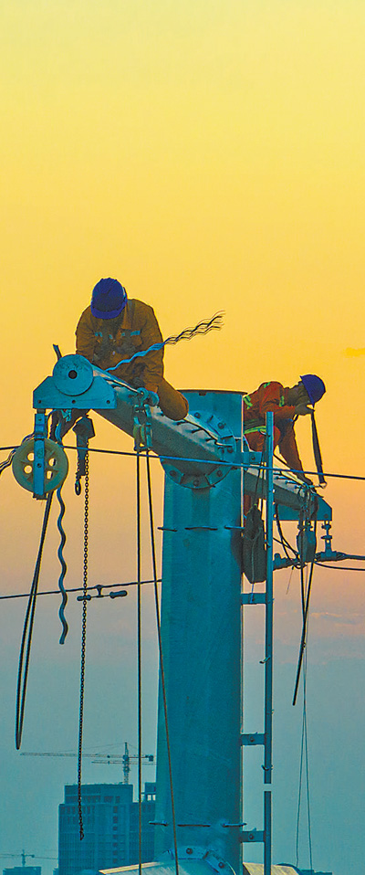 山東省聊城市電力部門工作人員正對(duì)線路進(jìn)行檢修。 謝 軍攝(人民視覺)