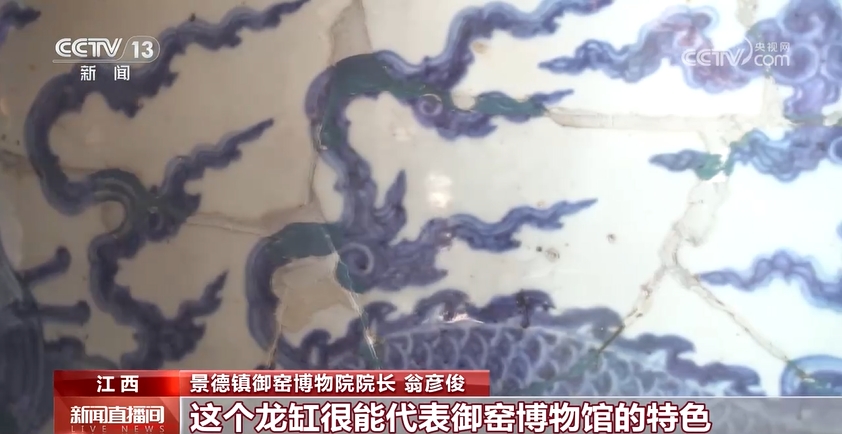 景德鎮(zhèn)御窯博物院院長 翁彥?。?/strong>我們的所有的展品都來自于我們身后的御窯廠,通過考古挖掘出來的。當(dāng)年御窯對落選品的處理制度非常嚴(yán)格,不合格的就要打碎還集中掩埋,所以我們能夠發(fā)現(xiàn)這么多的碎片,并且能夠把它拼對出來。這個(gè)龍缸很能代表御窯博物館的特色。