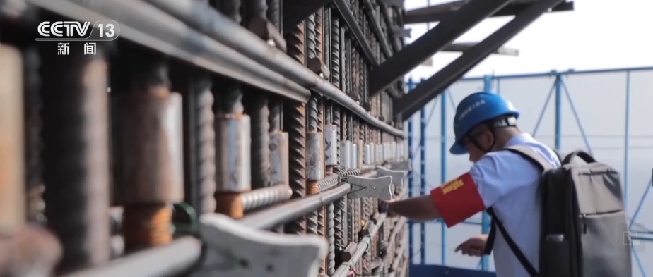 黃沖是這支年輕團(tuán)隊(duì)的主力隊(duì)員。現(xiàn)場,他正在檢查墊塊綁扎和鋼筋焊接情況,一旦出現(xiàn)墊塊下垂或者偏位,就會導(dǎo)致后續(xù)鋼筋保護(hù)層控制不到位。