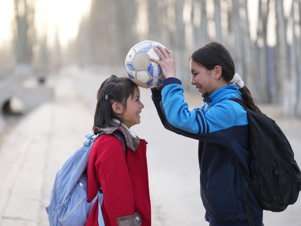 賽麗瑪很穩(wěn)重,賽比熱則是姐姐快樂的“小尾巴”,因為姐姐踢球,她也耳濡目染地開始練習(xí)?!拔疫M足球隊的時候很弱,然后練了很多次帶球、鏟球之類的,我就更加堅強了?!彼男A臉上帶著幾分驕傲,“在班里搬桌子的時候,我一搬桌子,桌子就會走。”