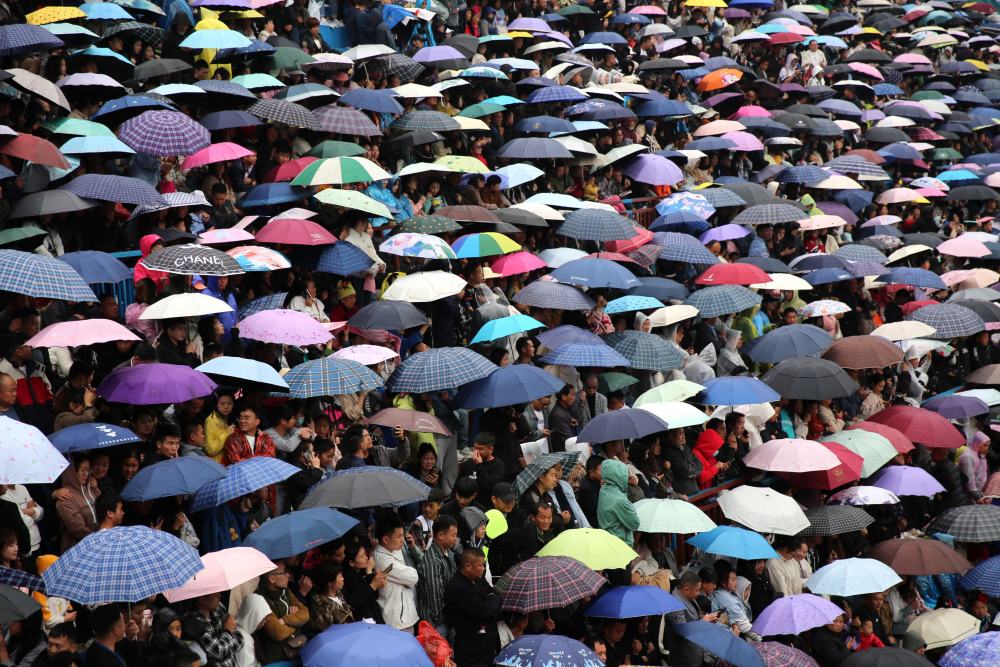 5月1日,人們?cè)谫F州省黔東南苗族侗族自治州臺(tái)江縣臺(tái)盤鄉(xiāng)臺(tái)盤村觀看“村BA”球王爭霸賽。新華社發(fā)(余天英 攝)