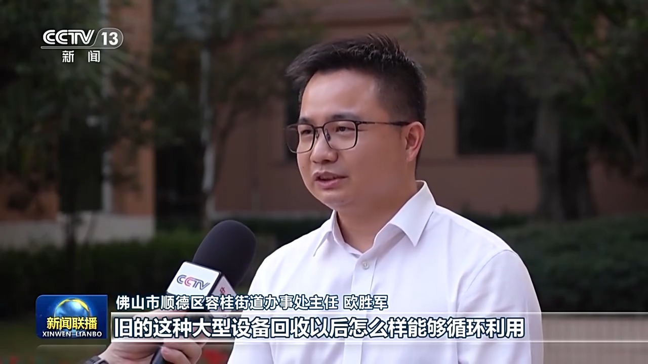 佛山市順德區(qū)容桂街道辦事處主任 歐勝軍:舊的這種大型設(shè)備回收以后怎么樣能夠循環(huán)利用,下一步我們也是由國資公司來跟我們本土的家電回收龍頭企業(yè)來進(jìn)行開發(fā),我們跟企業(yè)正在對接。