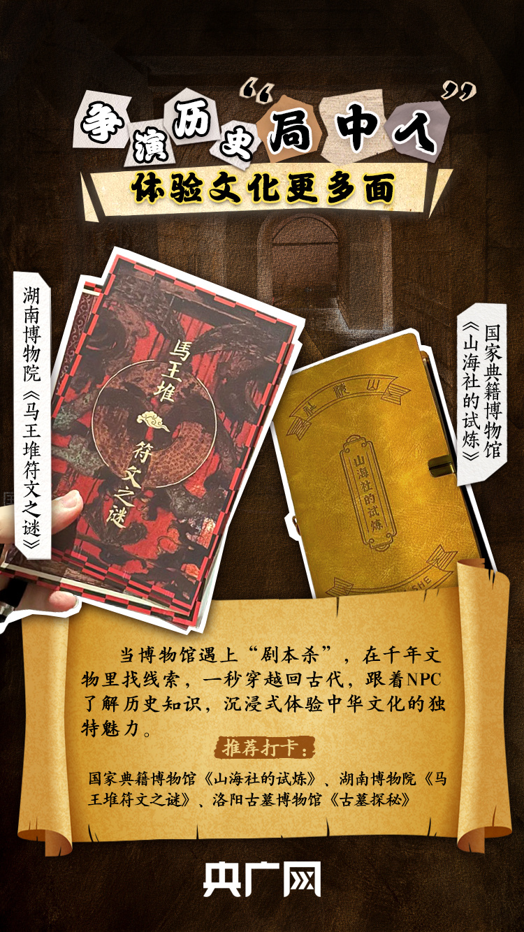 在國家典籍博物館的甲骨文展覽中尋找線索、到湖南省博物館破解“馬王堆符文之謎”……“五一”假期,不少人在博物館進入“劇本殺”的世界,跟著NPC了解歷史知識,沉浸式體驗中華文化的魅力。