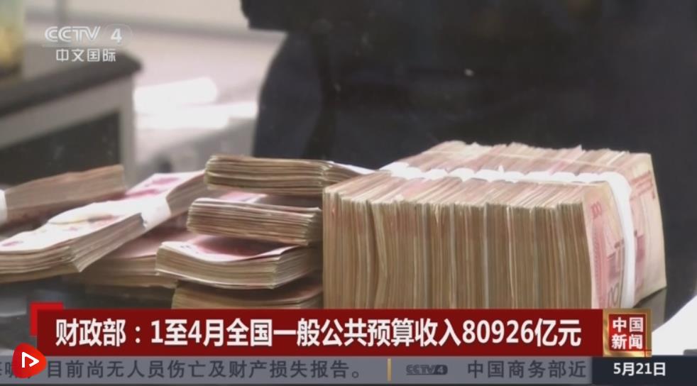 財(cái)政部:1—4月全國一般公共預(yù)算收入80926億元