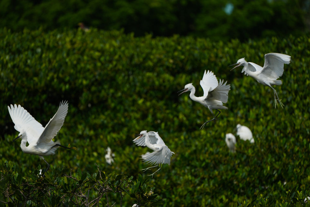 在廣東湛江霞山區(qū)觀海長廊一帶的紅樹林里棲息的鳥類(2023年5月25日攝)。
