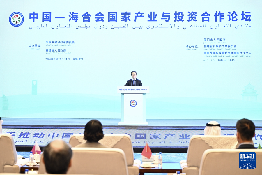 5月23日,中共中央政治局常委、國(guó)務(wù)院副總理丁薛祥在廈門(mén)出席中國(guó)-海合會(huì)國(guó)家產(chǎn)業(yè)與投資合作論壇,宣讀習(xí)近平主席賀信并致辭。新華社記者 燕雁 攝