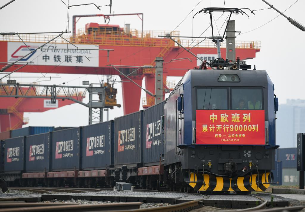 記者從中國(guó)國(guó)家鐵路集團(tuán)有限公司(下稱國(guó)鐵集團(tuán))獲悉,2024年5月25日8時(shí)40分,隨著X8157次中歐班列(西安—馬拉舍維奇)從西安國(guó)際港站開出,至此中歐班列累計(jì)開行突破9萬列,發(fā)送貨物超870萬標(biāo)箱、貨值超3800億美元,保持安全穩(wěn)定暢通運(yùn)行。