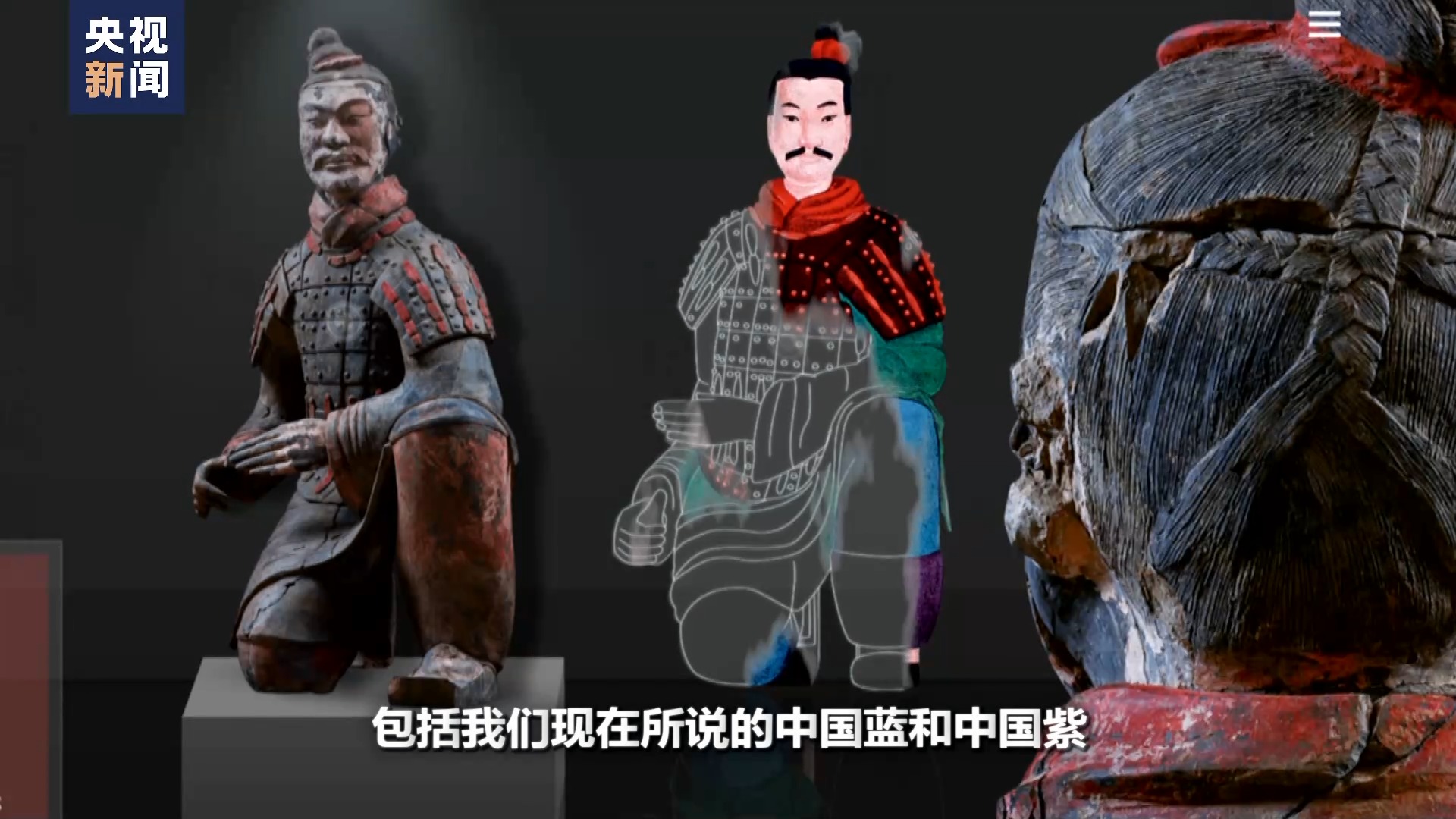 秦始皇帝陵博物院文物保護(hù)修復(fù)專家 蘭德?。?/strong>那么這在秦俑實(shí)際上,目前有八種顏色。紅、黃、綠、藍(lán)、紫、白、黑、粉等等,這就是已經(jīng)定型的八種。但是我們最近也要分析比這個(gè)還要多,包括有一些它是白里透紅的粉色,還有的它就是幾種合成色,包括我們現(xiàn)在所說(shuō)的中國(guó)藍(lán)和中國(guó)紫。