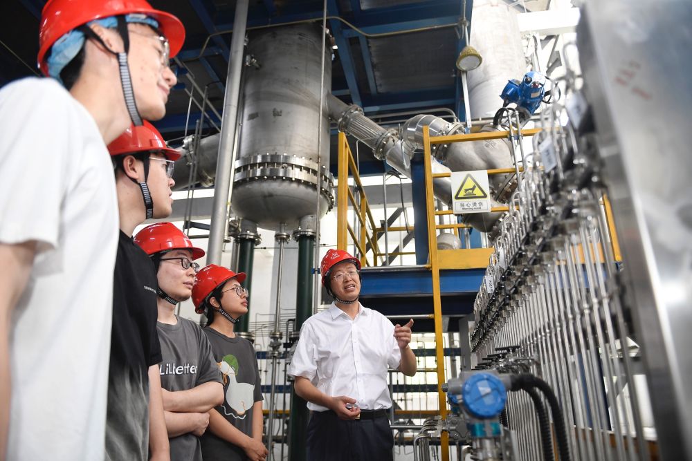 5月24日,在位于成都的中國核動力研究設(shè)計院內(nèi),鐘元章(左一)與團隊年輕人在試驗臺架上交流。