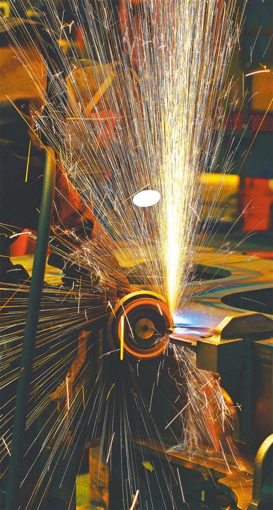 ▼5月28日,中車長客轉(zhuǎn)向架事業(yè)部焊接產(chǎn)線組,員工在進行動車組構(gòu)架橫梁焊后修磨作業(yè)。