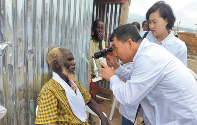 中國(guó)醫(yī)生在為吉布提民眾做視力檢查。