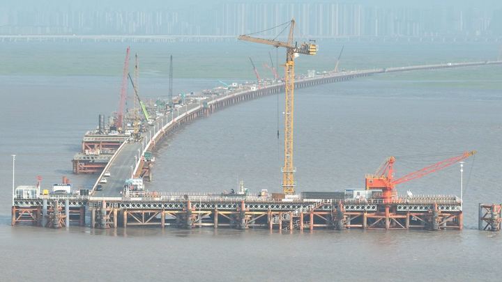 杭州灣南岸,千根樁基正朝海面深處進發(fā)。這里是杭州灣跨海鐵路大橋,也是世界上在建長度最長的高速鐵路跨海大橋,這條線路,將串起寧波、嘉興、蘇州、南通等城市,大幅拉近長三角主要城市間的時空距離。