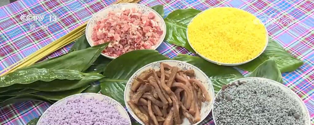 在云南曲靖市師宗縣五龍壯族鄉(xiāng),每年端午,當地村民就會用染出色彩繽紛的“花米飯”作為原料,再加入火腿、臘肉、大棗等輔料制作“七彩粽”。
