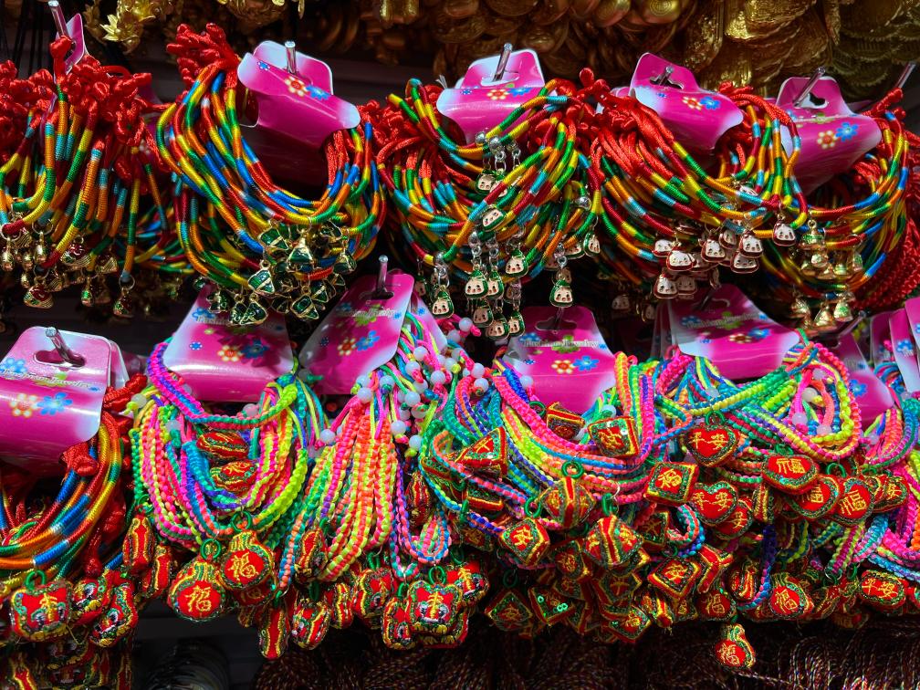 6月7日,這是義烏玉石緣飾品商店內(nèi)展示的端午手鏈產(chǎn)品。(受訪者供圖)