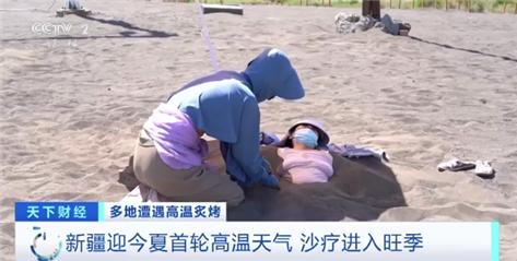 從6月10日開始,新疆大部分地區(qū)迎來了入夏以來首輪高溫天氣,部分地區(qū)的氣溫升至40攝氏度以上。在吐魯番,沙療產業(yè)迎來了旺季。
