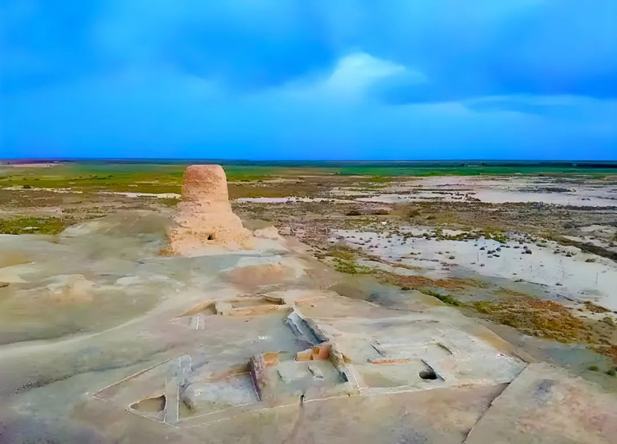 莫爾寺遺址發(fā)掘現場:遠處為圓形塔,近處為大佛殿和僧舍建筑基址。