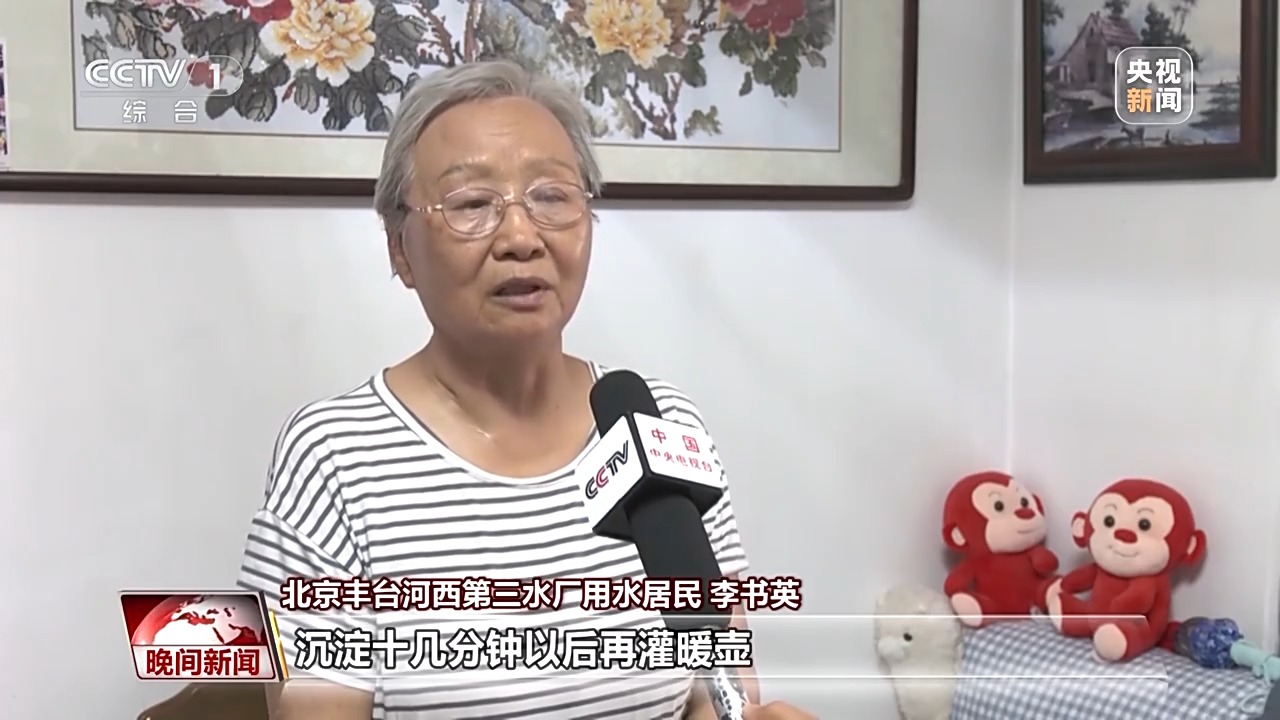 北京豐臺(tái)河西第三水廠用水居民 李書英:我們?cè)瓉碛盟畨責(zé)_水以后,還得沉淀,沉淀十幾分鐘以后再灌暖壺,但是暖壺里水堿也特別多?,F(xiàn)在通過南水北調(diào)水質(zhì)比之前好多了,水堿比原來大大減少。