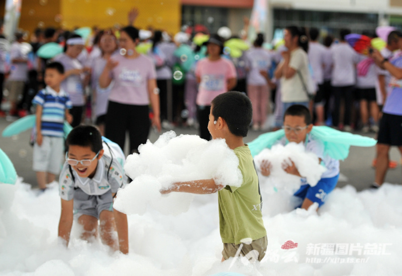 △6月14日,一場(chǎng)趣味“泡泡跑”活動(dòng)在烏魯木齊杉杉奧特萊斯廣場(chǎng)舉辦,600多名市民參加了這場(chǎng)別開(kāi)生面的5公里“泡泡跑”。與傳統(tǒng)的跑步比賽不同,“泡泡跑”更具趣味性,參與者可以邊跑邊玩,盡情享受一場(chǎng)清涼的泡泡盛宴。石榴云/新疆日?qǐng)?bào)記者 秦梅花攝