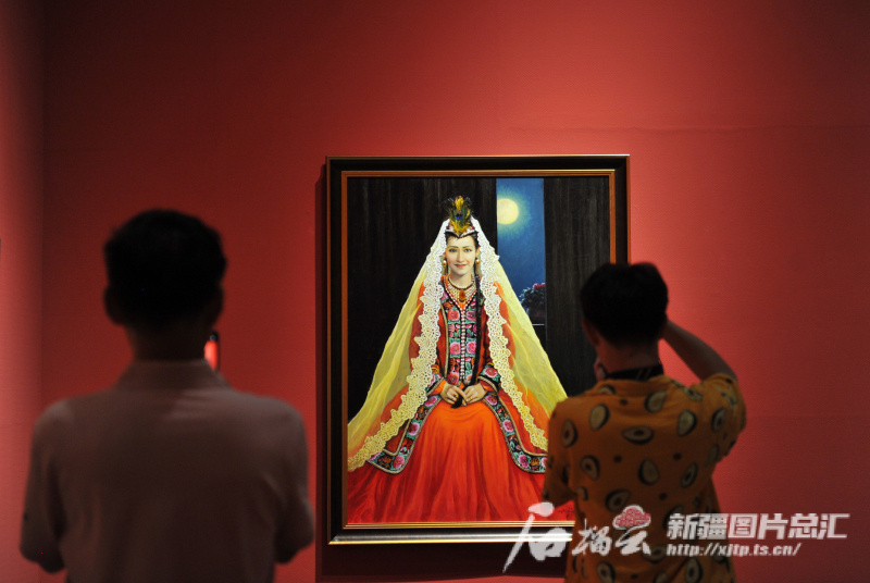 △6月15日,烏魯木齊市民在新疆美術(shù)館參觀(guān)畫(huà)展。石榴云/新疆日?qǐng)?bào)記者 秦梅花攝
