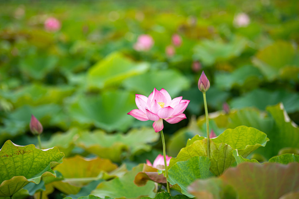 這是6月20日拍攝的寧波市江北區(qū)外漕村百畝荷田內(nèi)的荷花。新華社記者 江漢 攝
