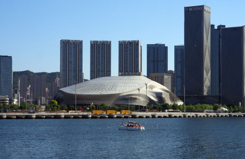 ↑夏季達(dá)沃斯主會場所在的大連東港商務(wù)區(qū)。