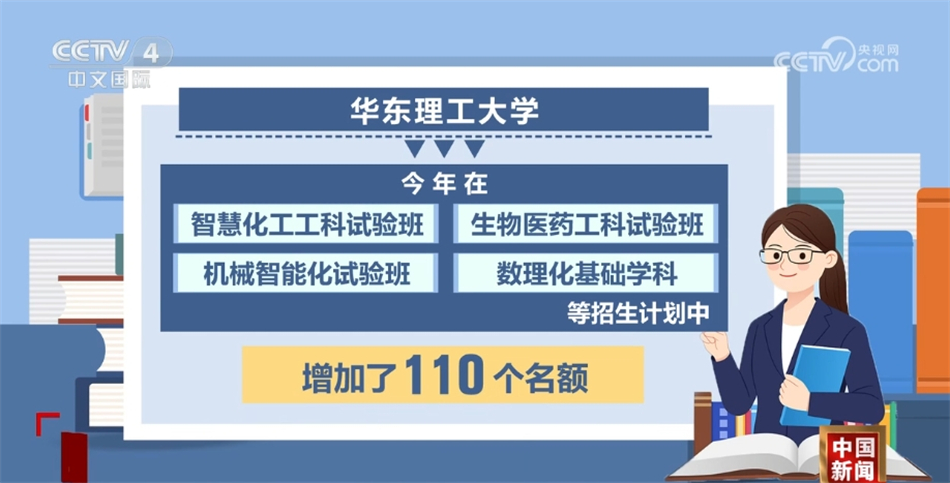 聚焦國家重大戰(zhàn)略和區(qū)域經(jīng)濟(jì)社會發(fā)展需求,今年不少高校強(qiáng)化了理工科優(yōu)勢專業(yè)招生計劃。北京化工大學(xué)今年增加了300個招生計劃,主要投放在化工、材料、機(jī)械和生物工程等理工類國家急需專業(yè)以及數(shù)學(xué)、物理等基礎(chǔ)學(xué)科。華東理工大學(xué)今年在智慧化工工科試驗班、生物醫(yī)藥工科試驗班、機(jī)械智能化試驗班、數(shù)理化基礎(chǔ)學(xué)科等招生計劃中,增加了110個名額。
