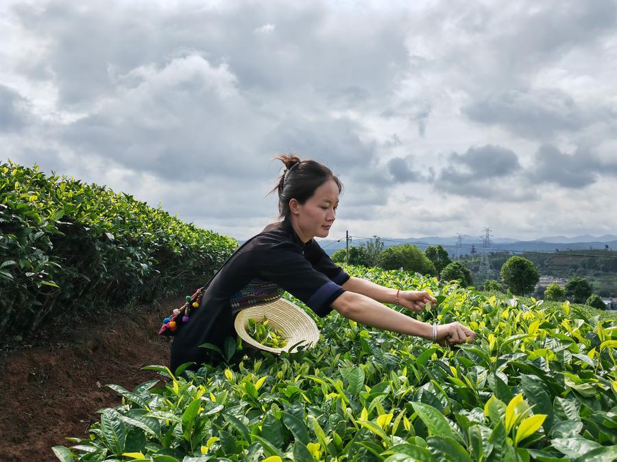 5月29日,云南省普洱市銀生茶莊園的工作人員在采茶。新華社記者 林碧鋒 攝