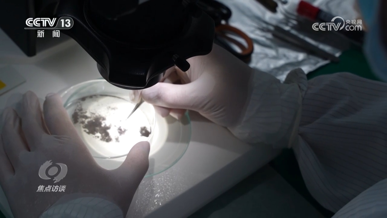 科研團(tuán)隊(duì)拿到月壤后的第一步是樣本制備,挑選工作要在顯微鏡下進(jìn)行,手部任何一點(diǎn)多余的抖動(dòng)都會(huì)導(dǎo)致顆粒無(wú)法被有效挑選,后續(xù)研究也就無(wú)從談起。