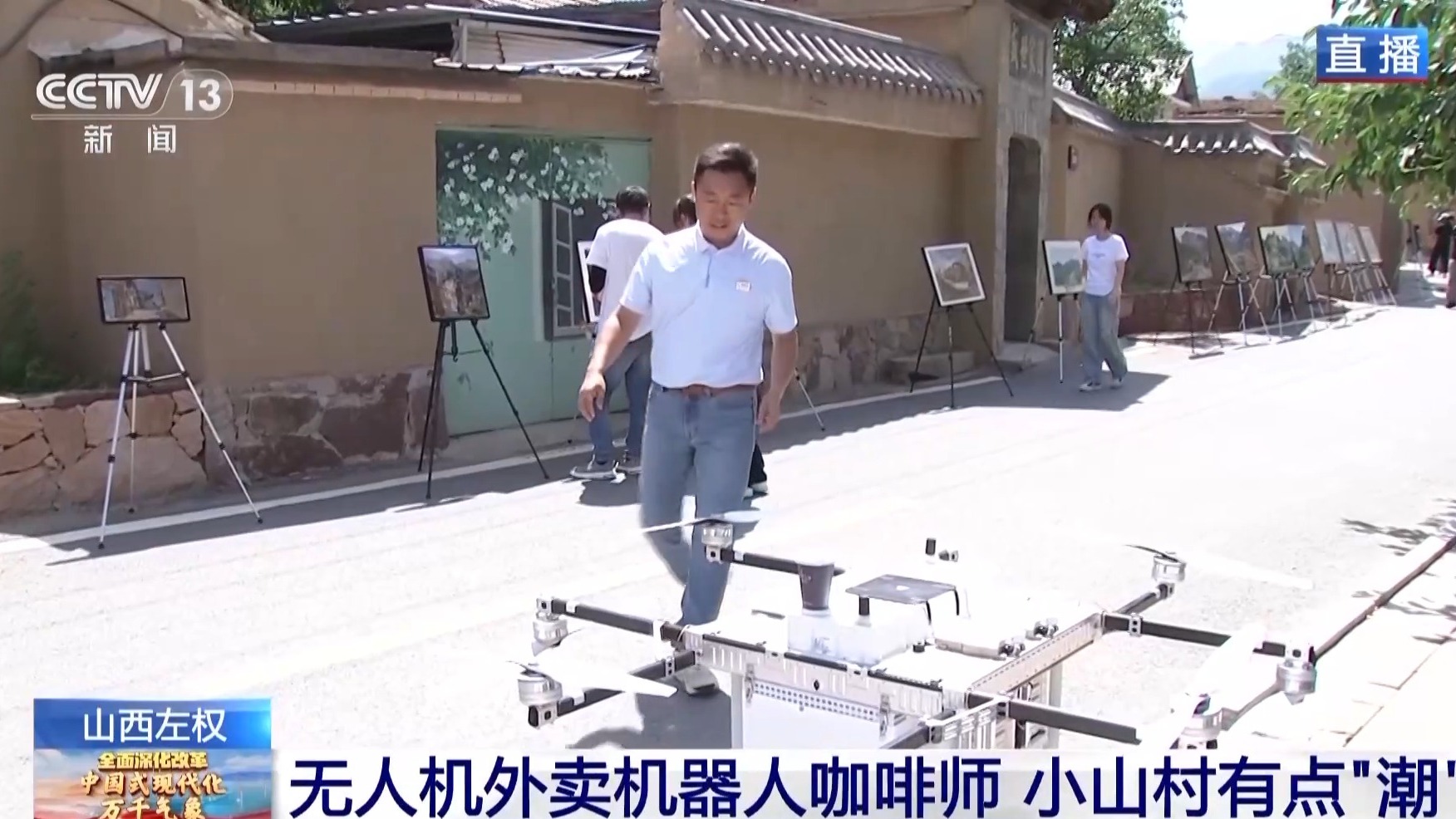 隨著前來寫生的人越來越多,澤城村的“賣點(diǎn)”逐漸多了起來。小小的一杯咖啡在城市里不足為奇,但是在這里我要通過這杯咖啡介紹兩個(gè)特點(diǎn)。第一點(diǎn),這杯咖啡不是我從店里自取,也不是外賣小哥送過來的,而是在直播前我通過由村民操控的這架無人機(jī)收取的,這個(gè)無人機(jī)可攜帶10公斤貨物送達(dá)10公里外的顧客手中。但是無人機(jī)外賣只是它其中一項(xiàng)業(yè)務(wù),如果村里急需醫(yī)療物資或者在災(zāi)害環(huán)境中運(yùn)送緊急物資,它都是一把好手。