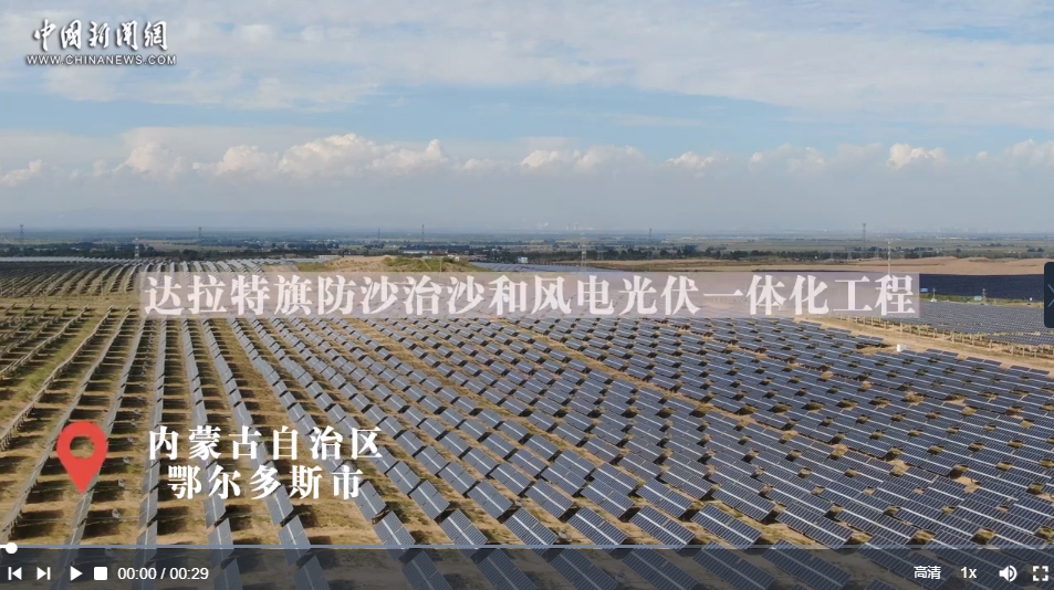 6月28日,“鑄牢共同體 中華一家親”主題宣傳活動(dòng)采訪團(tuán)來到內(nèi)蒙古自治區(qū)鄂爾多斯市達(dá)拉特旗防沙治沙和風(fēng)電光伏一體化工程。工程主要布局在庫布其沙漠和南部干旱硬梁區(qū),庫布其沙漠工程規(guī)劃總長133公里、裝機(jī)規(guī)模2700萬千瓦的“光伏長城”。達(dá)拉特旗光伏發(fā)電應(yīng)用領(lǐng)跑基地位于“光伏長城”中部,基地采取“光伏+生態(tài)治理+有機(jī)農(nóng)林+沙漠旅游”模式,種植紫穗槐、黃芩、黃芪等經(jīng)濟(jì)作物。