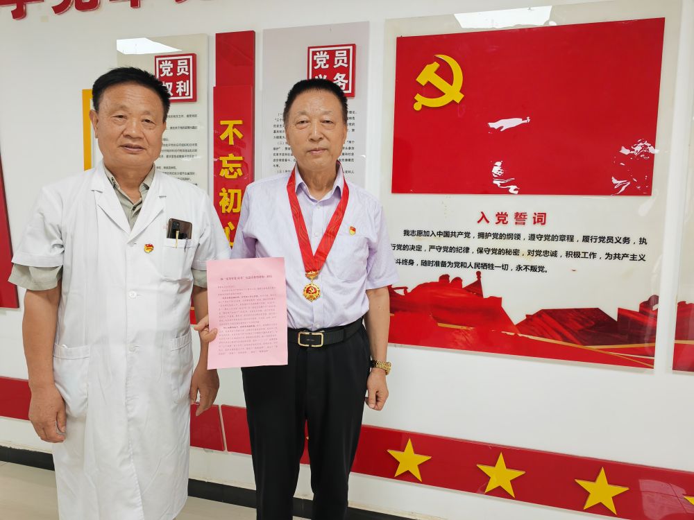 為李長海頒發(fā)紀念章的是西安市高陵區(qū)醫(yī)院退休黨支部書記杜軍政,從2021年至今,他已經(jīng)為6名黨員頒發(fā)過“光榮在黨50年”紀念章?!懊恳淮晤C發(fā)紀念章,都會聽老黨員講一講他們的故事,都是一次精神的洗禮和傳承?!?/p>