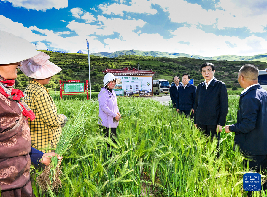 7月1日至3日,中共中央政治局常委、全國政協(xié)主席王滬寧在四川甘孜、阿壩調(diào)研。這是7月1日王滬寧在甘孜縣了解青稞生產(chǎn)情況。新華社記者 饒愛民 攝