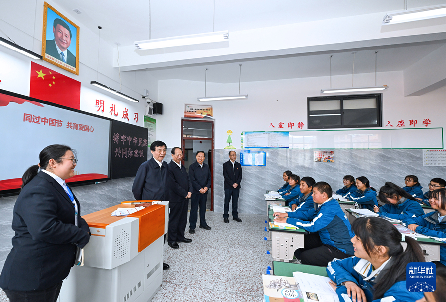 7月1日至3日,中共中央政治局常委、全國政協(xié)主席王滬寧在四川甘孜、阿壩調(diào)研。這是7月3日王滬寧在阿壩縣中學(xué)了解開展愛國主義教育和民族團(tuán)結(jié)進(jìn)步教育情況。新華社記者 饒愛民 攝