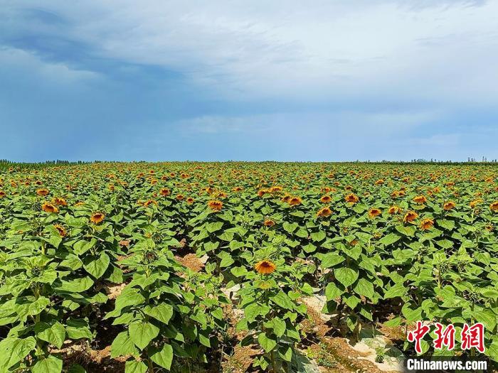 第十師北屯市葵花綻放,長(zhǎng)勢(shì)良好。胡雍雯 攝