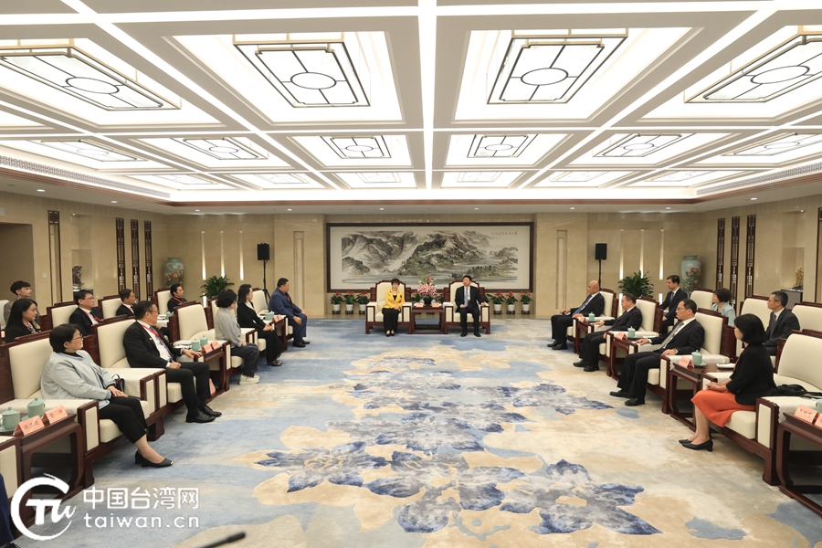 中共中央臺辦、國務(wù)院臺辦主任宋濤7月8日在杭州會見中國國民黨前主席、中華青雁和平教育基金會董事長洪秀柱一行。