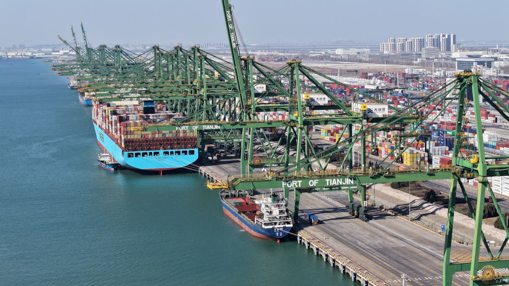 圖為2月2日拍攝的天津港太平洋國際集裝箱碼頭(無人機照片)。新華社記者 趙子碩 攝