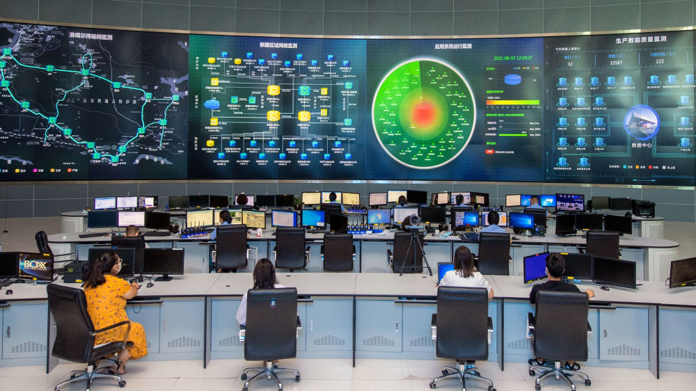 2023年12月6日,中國石油新疆油田公司生產指揮中心的監(jiān)控大屏實時顯示油田生產動態(tài)數據。新華社發(fā)(閔勇 攝)