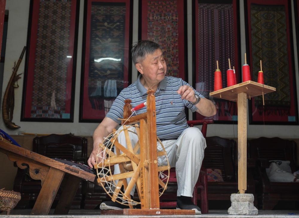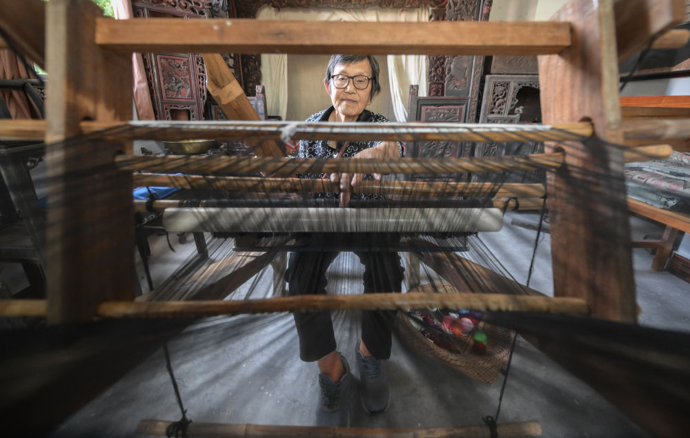 7月3日,唐洪祥檢查織錦博物館里收藏的清代木織機狀況。