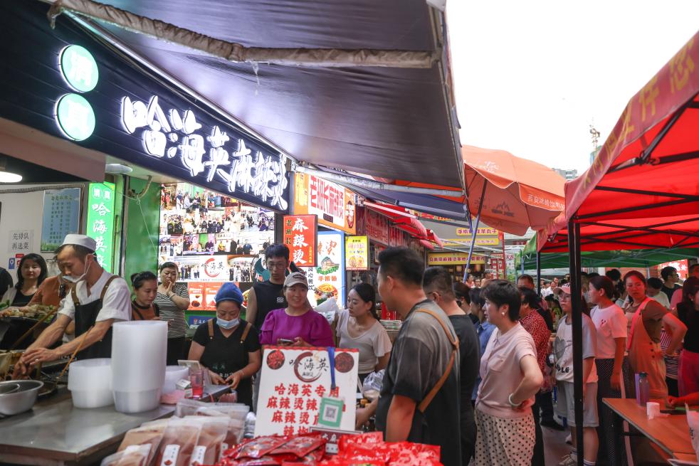7月22日,甘肅天水市名優(yōu)小吃城游人如織。新華社記者 呂帥 攝