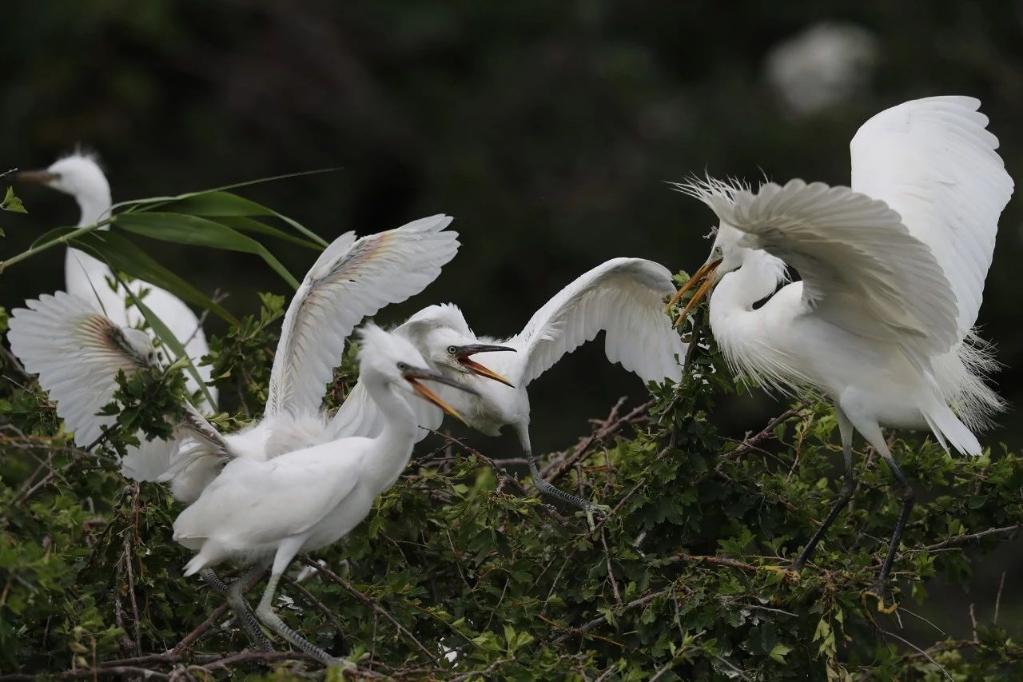 遼寧蛇島老鐵山國家級自然保護(hù)區(qū)管理局副局長王小平說:“每年5月初,上百只黃嘴白鷺飛臨蛇島,在這里筑巢產(chǎn)卵,繁育后代。目前正是幼鳥練習(xí)飛行的時(shí)候,它們會在8月中旬左右離開蛇島,在大連周邊的灘涂停留一段時(shí)間后一路向南,最終在菲律賓、馬來西亞等地越冬。”