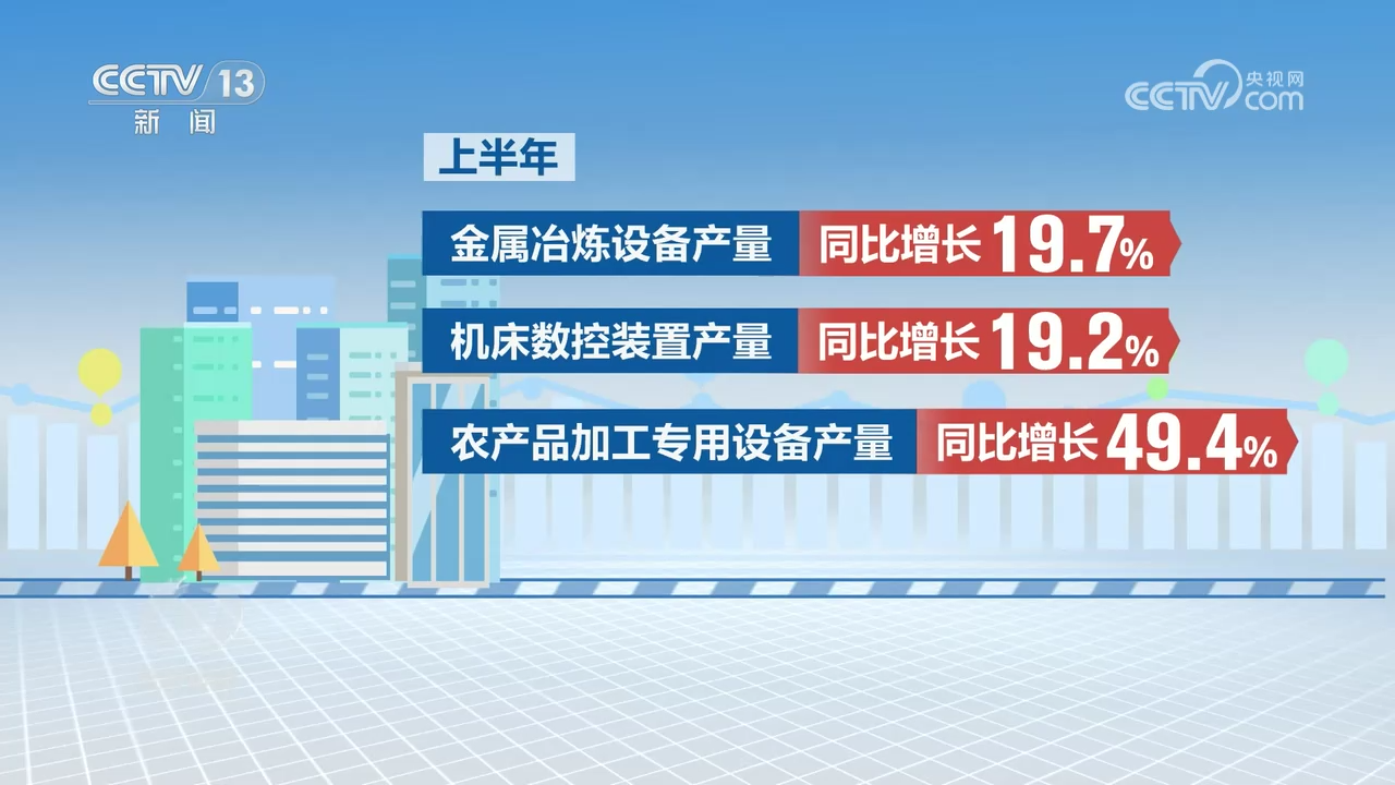 今年以來,在各方共同努力下,推動大規(guī)模設(shè)備更新和消費品以舊換新工作取得良好開局。一方面,大規(guī)模設(shè)備更新帶動了相關(guān)設(shè)備生產(chǎn)較快增長,惠及多個重點行業(yè)。上半年,規(guī)模以上金屬冶煉設(shè)備、機床數(shù)控裝置、農(nóng)產(chǎn)品加工專用設(shè)備產(chǎn)量同比分別增長19.7%、19.2%、49.4%。另一方面,消費品以舊換新政策引導(dǎo)居民消費潛力有序釋放,對拉動汽車、家電等耐用消費品銷量增長起到了一定的“催化”作用。上半年,限額以上單位,也就是年主營業(yè)務(wù)收入達(dá)到500萬元及以上的零售企業(yè),家用電器和音像器材類商品零售額同比增長3.1%,比上年同期加快2.1個百分點。