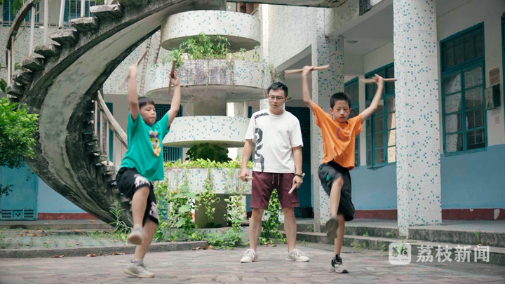 為了解決缺兵少將的問題,也讓更多年輕人愛上英歌舞,2017 年,陳來發(fā)教練力排眾議,打破“傳內(nèi)不傳外、傳男不傳女”的舊俗,推動英歌參與“非遺進(jìn)校園”活動,于普寧市南山小學(xué)組建一支少兒英歌隊,面向全校招生,首批報名者多達(dá) 380 余人。自此,陳揚波也開始站在學(xué)生面前,成為了普寧英歌向下傳播的一個紐帶。