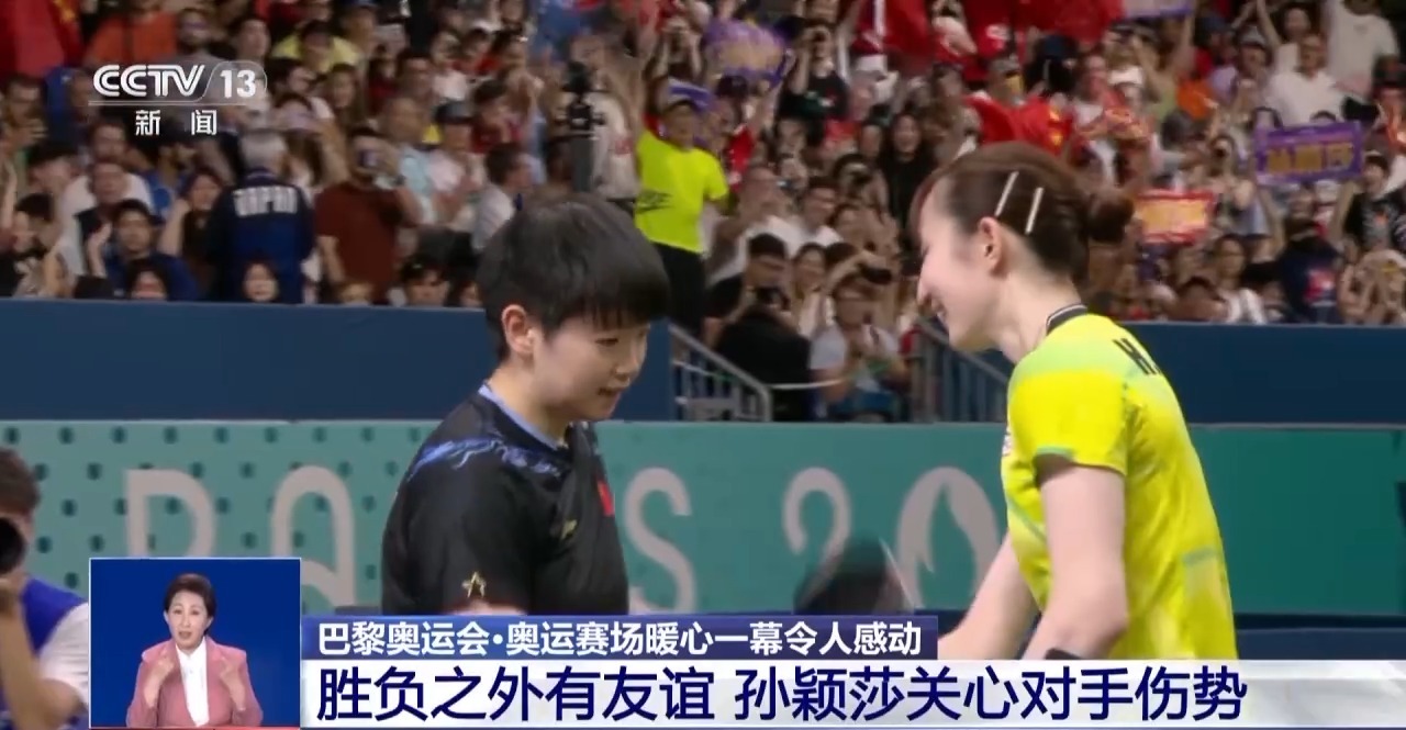 乒乓球女單半決賽,孫穎莎與日本選手早田希娜狹路相逢,技高一籌的莎莎以4∶0橫掃對(duì)手晉級(jí)。比賽結(jié)束之后,孫穎莎沒(méi)有慶祝就匆匆忙忙走到早田身邊,關(guān)切地詢問(wèn)她手腕的傷勢(shì)。一個(gè)小小的暖心之舉,讓日本女孩大受感動(dòng)。孫穎莎也用自己的行動(dòng)詮釋了“友誼第一,比賽第二”的體育精神。