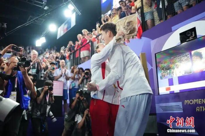 資料圖:北京時間8月6日,在巴黎奧運(yùn)會跳水女子10米臺決賽中,東京奧運(yùn)會該項(xiàng)目冠軍得主全紅嬋成功衛(wèi)冕,陳芋汐獲得亞軍。圖為全紅嬋和陳芋汐相擁。