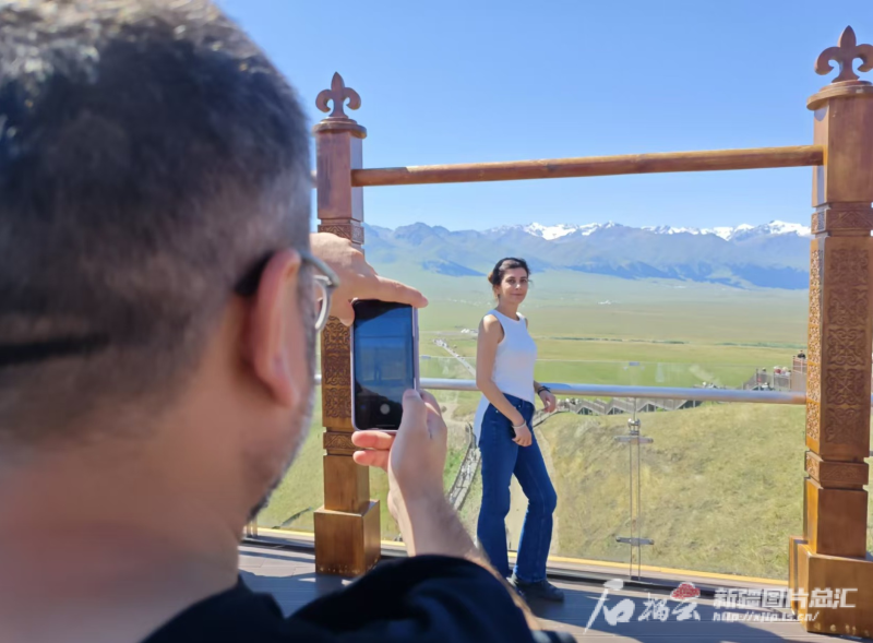 當(dāng)日,車(chē)輛剛抵達(dá)那拉提景區(qū)游客集散中心,11位土耳其媒體人士便滿(mǎn)懷激情,紛紛舉起手機(jī)與相機(jī),快門(mén)聲此起彼伏,記錄下這初見(jiàn)的驚喜。抬眼遠(yuǎn)眺,看到的是村落里一座座錯(cuò)落有致的院落式,這里是7月初營(yíng)業(yè)的那拉提拈花灣哈茵賽民族風(fēng)情度假村。